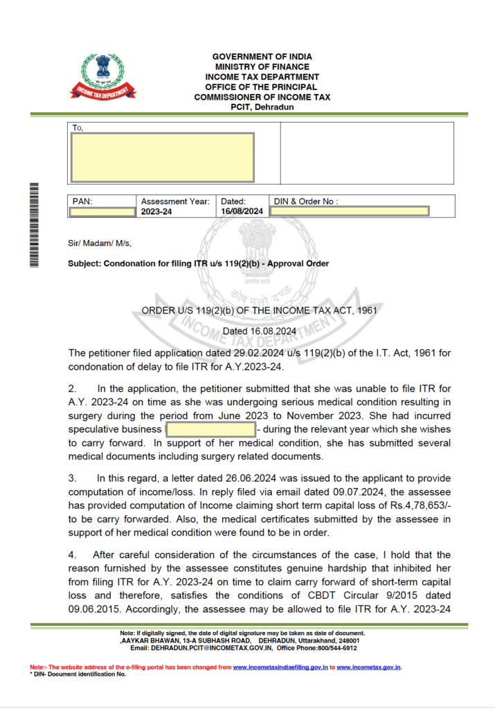 | Genuine Hardship | The delay must be due to a genuine reason that caused hardship to the taxpayer. Examples include medical emergencies, natural calamities, or loss of important documents. |